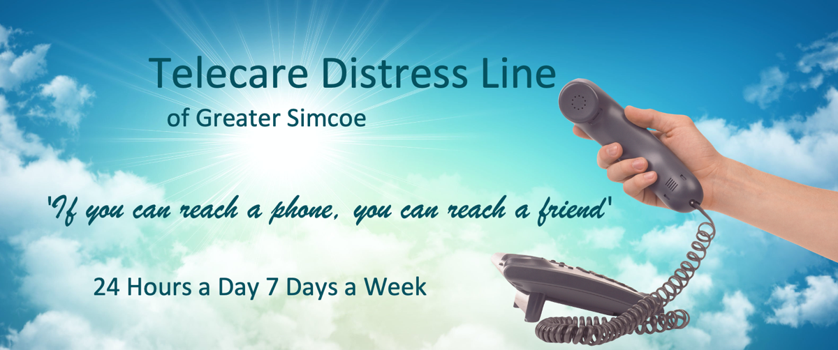Telecare Distress Line is a free 24 hour, 7 days a week, anonymous, and confidential distress line serving Simcoe County and area. Specially trained volunteers listen without judgment while acknowledging and supporting the caller. If necessary, community referrals are offered for extra support.